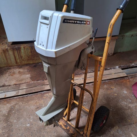 Chrysler 9601 utombordare med angiven effekt 9,2 hk. Motorn är bensindriven och avsedd för montering på akterspegel. Färg vit. På typskylten anges modell 9601 och serienummer, tillverkad av Chrysler Outboard Corp, Hartford, Wisconsin, U.S.A. Passar mindre motorbåtar där en utombordsmotor i denna effektklass behövs. Motorn har dragstart och traditionell förgasarkonstruktion enligt bilderna. Startar, men går dåligt.