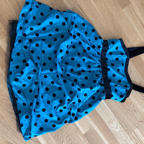 Lindex klänning för flicka i storlek 170. Ärmlös modell i svart bomullstyg med volangkjol och dekorativ dragkedja framtill. Passar som vardags- eller festklänning för barn i motsvarande storlek.