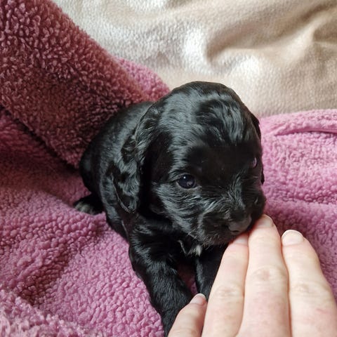 Nu är det dags för vår älskade lilla valp att hitta sin egen familj Det här är en fantastisk blandning av Cockapoo och Springer Spaniel – en perfekt kombination av lekfullhet, intelligens och kärlek.