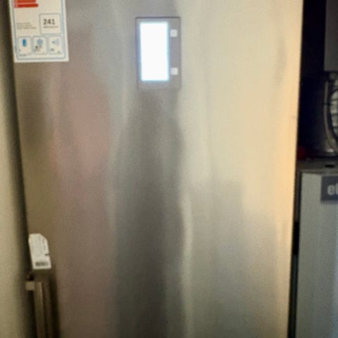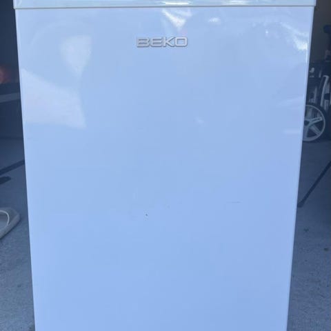 frysskåp med flera genomskinliga lådor för organiserad förvaring av frysta varor. Fristående modell med vit front och vertikalt handtag på dörren. Passar för användning i kök, grovkök eller förråd där extra fryskapacitet behövs.