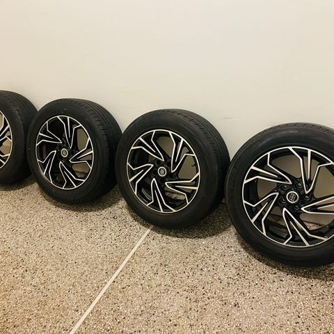 Sommardäck på lättmetallfälgar. Två Nokian 235/55 R17 och två General Grabber 235/55 R17 båda med 7 mm djup. Suttit på Volkswagen Tiguan. Pris 5500kr ring Gösta 0705125972 svarar inte på mejl pga av lånad.