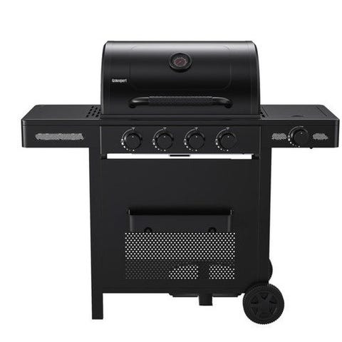 Gasolgrill i bordsmodell i svart utförande. Locket har inbyggd termometer och grillen är utrustad med två vred för reglering av gasolbrännare. Invändigt finns grillgaller och medföljande gasolslang med regulator. Passar för användning på altan, uteplats eller vid camping där en kompakt gasolgrill behövs.