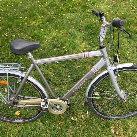 Cykeln har herrram, pakethållare bak, stänkskärmar och belysning fram och bak. Utrustad med navväxel bak och fotbroms.