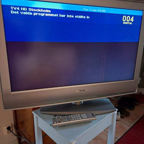 Sony TV 32 tum. Svart front och silverfärgat stativ. Fjärrkontroll ingår enligt bild. Lämplig för användning i vardagsrum, sovrum eller som extra tv-skärm.