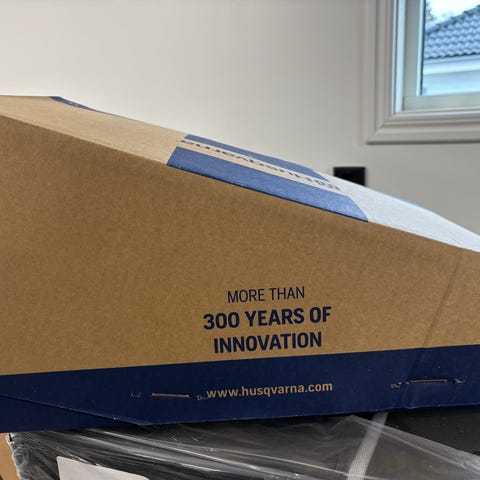 Helt nya motorsåg i låda.