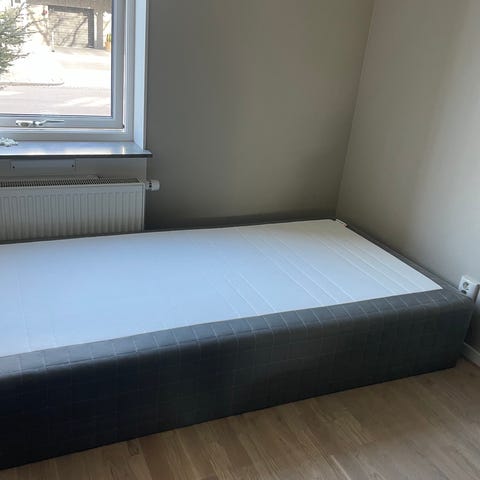 2st IKEA sultan säng med resårmadrass i vit färg. Sängen består av en resårbotten med bäddmadrass och ben. Passar som vanlig säng i sovrum eller gästrum. 105x200cm