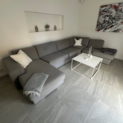 Säljer vår bekväma hörnsoffa med divan från Mio. Madison är en tidlös serie med hög komfort och stilrena träben som gör det enkelt att städa under. Ljusgrått, tåligt tyg som passar de flesta hem. Två flyttbara nackstöd ingår för extra komfort!