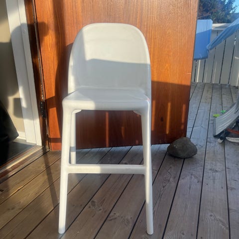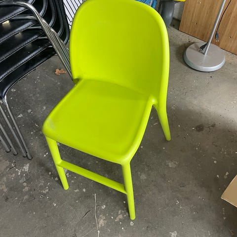 Juniorstol Urban från IKEA i härlig grön färg. Har två stycken likadana 200 kr/st. I använt skick material plast. Funkar lika bra att använda inomhus som utomhus.