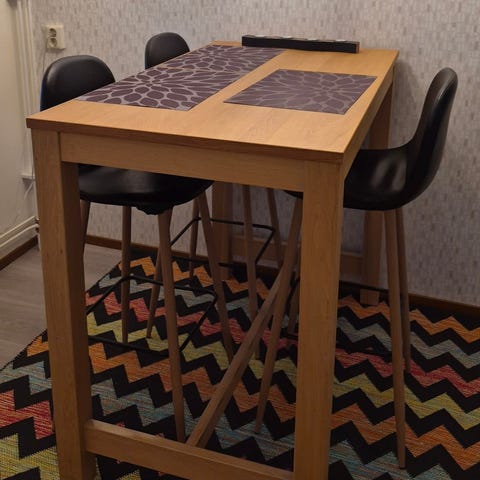 Köpte nyss helt nytt bord å stolar från Jysk men tyckte inte de passa hemma hos oss