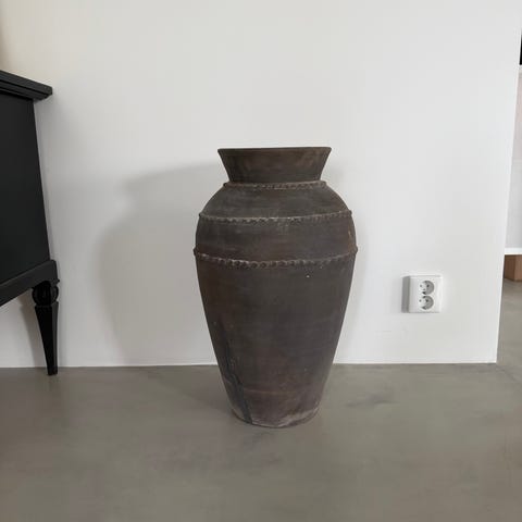 IKEA vas i hög modell i svart färg. Cylindrisk form med smalare hals och strukturerad yta. Passar som golvvas eller större bordsvas för exempelvis torkade växter eller dekorationskvistar i hemmet.