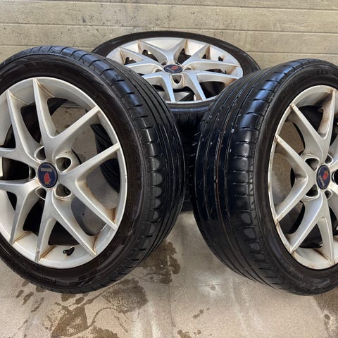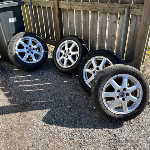 Säljer en komplett uppsättning (4 st) sommarhjul som suttit på en Saab 9-5.