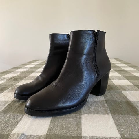 Svarta högklackade skor från Din Sko. Stl 39 eller 40. Dragkedja på sidan. Fin utsmyckad klack! Enbart testade, aldrig använda, så i nyskick. Hämtas i Uppsala alt. skickas mot frakt. Endast swish.