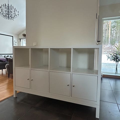 Kallax hylla större modellen. Den skruvas ner av köparen.