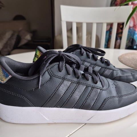 Adidas sneakers i storlek 39. Låga sneakers i vit färg med snörning och gummisula. Ovandel i syntetmaterial med klassiska Adidas-detaljer på sidorna. Passar till vardagsbruk och fritidsaktiviteter.