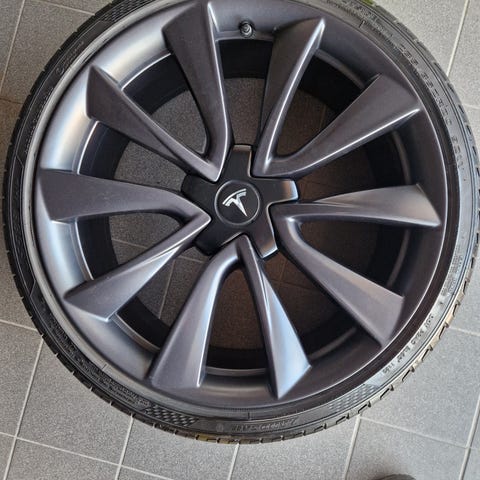 Säljer ett komplett set original Tesla Model 3 Performance 20-tums fälgar med däck.