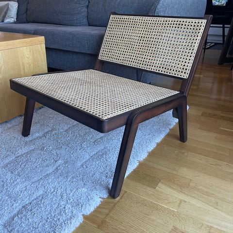 Minimalistisk design fåtölj av arkitekt Pierre Jeanneret som togs fram i samband med Corbusier Chandigarh.