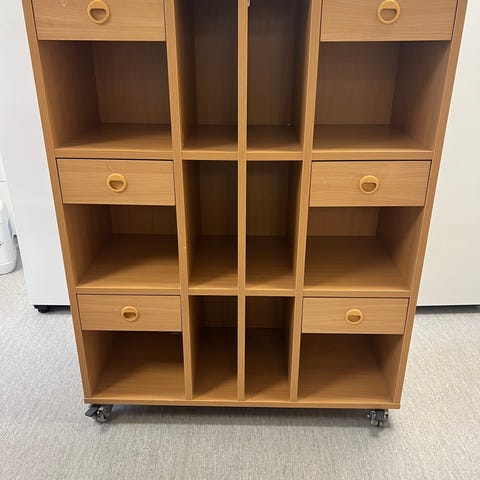 Ikea bokhylla med förvaring i björkfanér. Övre delen består av öppna hyllplan för förvaring av böcker, pärmar eller prydnader. Nedre delen har ett skåp med dörr för dold förvaring. Passar i vardagsrum, kontor eller arbetsrum. Formgiven av