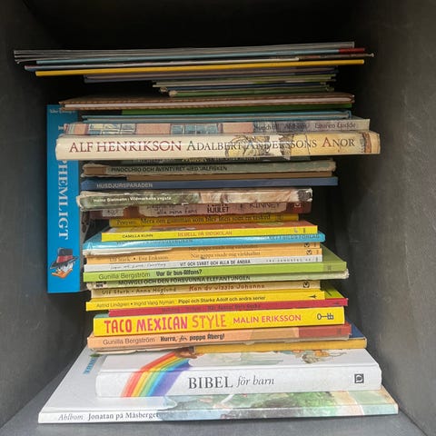 Paket med blandade barnböcker i bilderboksformat. Flera olika titlar och teman, bland annat djur, vardagssituationer och äventyr. Böckerna är i olika storlekar och färger, med illustrerade omslag. Passar högläsning och egen läsning för barn i olika åldrar.