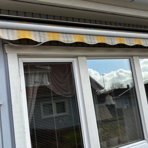Säljer en markis som är 6 meter bred och fäller ut 3 meter. Tyget behöver bytas. Motorn fungerar men armarna gnisslar när den fälls ut/in.