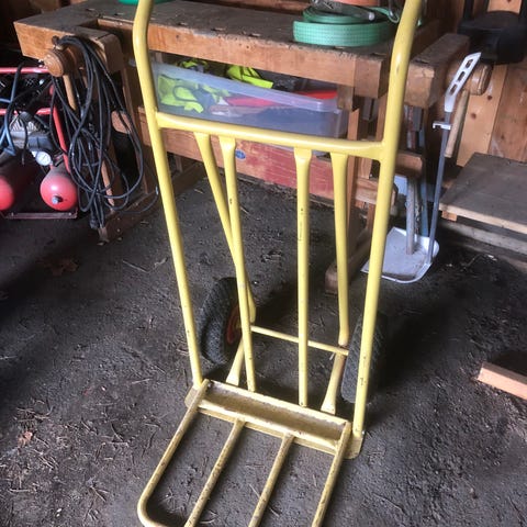 Magasinkärra i metall med två hjul och svart lackering. Maxlast enligt märkning är 100 kg. Utrustad med luftgummihjul och lastplatta i metall. Passar för transport av kartonger, flyttlådor och annat gods upp till angiven maxvikt.