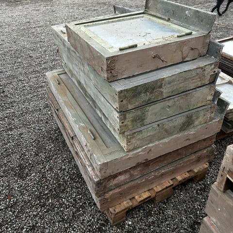 4 stycken Träramade fönster med glas i rektangulär form utan ram.