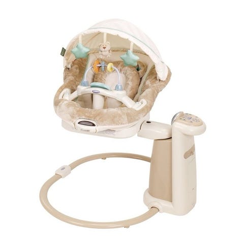 Batteridriven babysitter som gungar barnet i flera olika lägen/hastigheter. Man kan också spela upp musik och fågelläten från stolen.