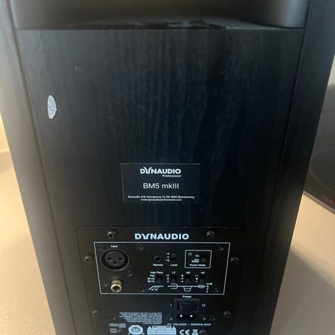 Manual, fjärrkontroll och tillbehör syns i originalförpackningen till förstärkaren.