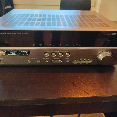 Yamaha HTR-2071 hemmabioförstärkare med tillhörande högtalarpaket i svart utförande.
