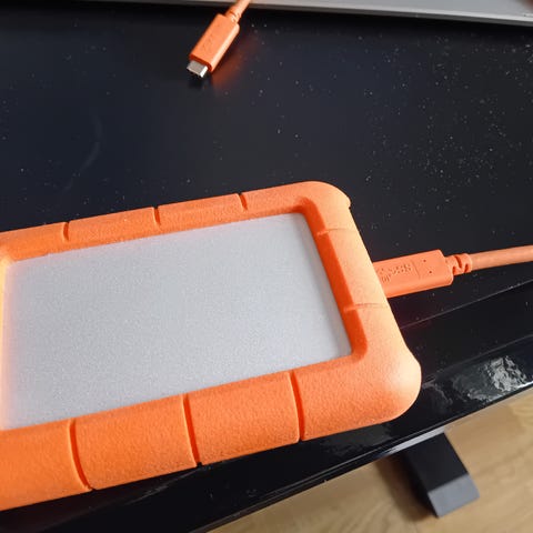 • Stöttålig design (orange skydd) - Blekt LaCie-logga efter borttagning av märktejp på framsidan, stör ej funktionen men drar av 100 på priset map detta (se bild4).