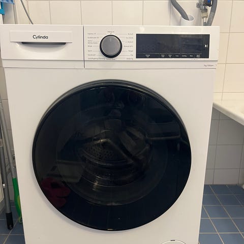 Max kapacitet 9 kg, centrifugering upp till 1400 varv/min.