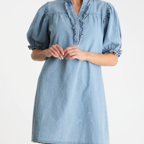 En klänning i tvättad denim