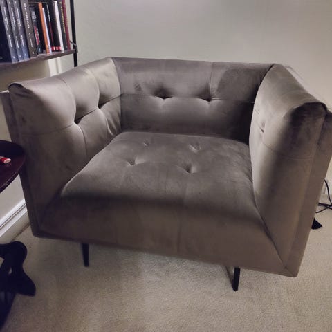 Säljer denna bekväma fina mörk gråa fåtölj då den inte får plats här hemma längre.