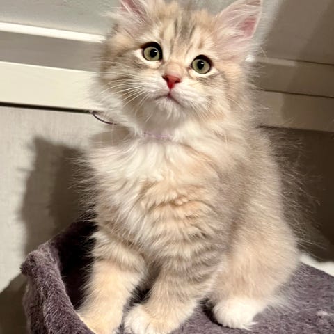 Kelig och lugn som gillar vara i närheten av människa. Holly är en av 4 katt syskon från augusti kullen 2025 . Båda föräldrar Elisey och Karmen har gjört hälsotester PKD , HCM med ua.