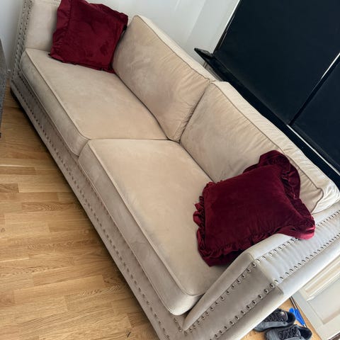Säljer en rymlig och stilren Howardsoffa (3-sits) ca 240 cm bred i ljus/beige tyg. I bra begagnat skick med visst slitage (se bilder). Hämtas på plats.