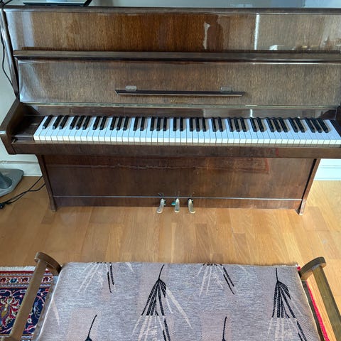 Nordiska Pianofabriken akustiskt piano brunt trä
