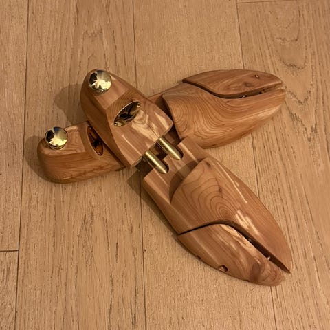 Skoblock i cederträ, Swedish Shoecare, med justerbara skruvar för att få perfekt passform i bredd. Absorberar fukt, håller skorna torra och tar bort dålig lukt. Kan användas till finskor, sneakers, stövlar, etc. och funkar lika bra till dam- som herrskor. Finns i storlekarna 40/41/42/43, helt nya i förpackning. Doftar härlig cederträ och är riktigt fina, håller bra kvalité! Säljer ett par för 279 kr eller två par för 499 kr.
