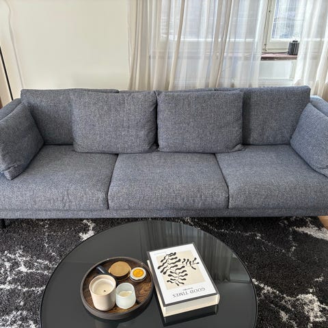 Soffans kuddar och dynor har avtagbara klädslar ich enkelt att tvätta..