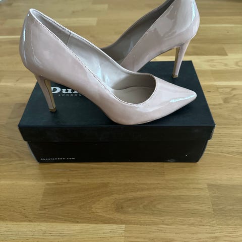 Bianco klackskor i storlek 37. Skorna har smal, hög klack och spetsig tå. Ovandel i rosa mockaliknande material och svart innersula. Yttersula i gummi. Passar exempelvis till vardag eller fest där klackskor önskas.