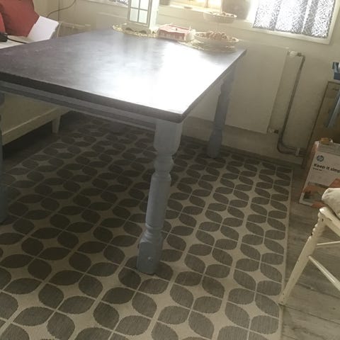 Gammalt bord med svängda ben. Osäker på ålder men kanske 50talet