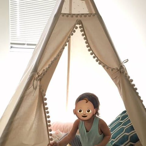 Lästält med volanger upptill och pompoms från Newbie, gjord i 100% ekologisk bomull. Tältet har en vadderad botten som sitter fast i tältet och en ögla upptill för enkel upphängning. Dold metallring för ökad stadga upptill som kan lossas vid behov. Ovanför öppningen sitter en fastsydd Newbie-etikett. Pompoms hänger i olika höjder inne i tältet och kan tas loss med hjälp av kardborre.