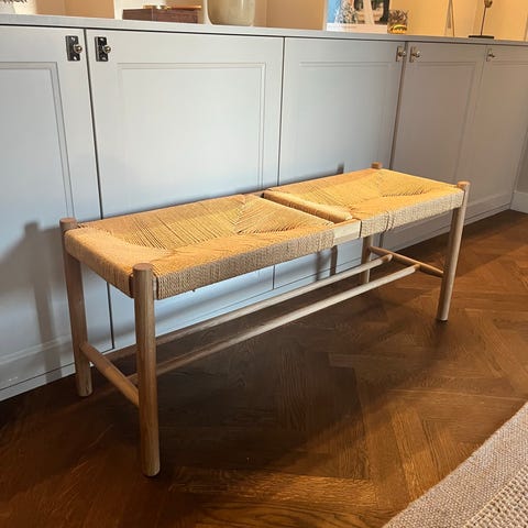 Förvaringsbänk som kan användas i hallen så som i sovrummet. Skön att sitta på samt bra förvaring i bänken. Väldigt fint skick!