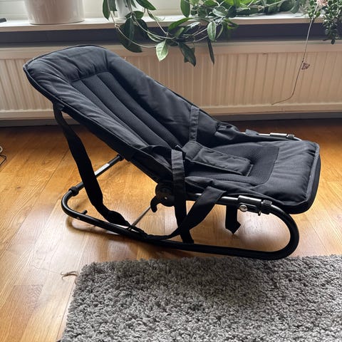 Joie babysitter i grå färg med avtagbar, mönstrad sittdyna. Babysittern har inbyggt sele-/bältessystem för att hålla barnet på plats. Mjukt vadderad insats ger stöd för mindre barn. Passar för inomhusbruk, till exempel vid vila eller lekstund. Ställning och båge är i ljus plast/metall med rundad fot för stabil placering på golv.