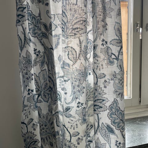 Öglade gardiner med kaktusmotiv. Inköpta på Hemtex för några år sedan. Knappt använda. Passade inte hos mig, men väldigt härligt och fint motiv! Obs, på viss av bilderna är gardinerna vikta på hälften av sin bredd. Mått: ca 120cm x ca 218 (plus 11 cm som är fållad. Hämtas i centrala Uppsala eller skickas.