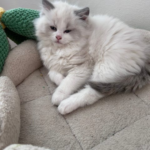 Han är ragdoll utan stamtavla,inte kastrerad och inte vaccinerad, men fullt frisk.