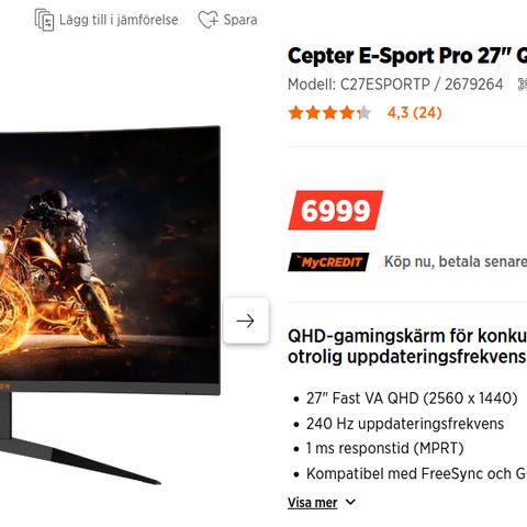 Köpte denna på Power den 29 november 2023. Köpte dock en annan monitor i mars 2024. Så denna har knappt används. Laddade upp nuvarande priset på POWER som säljs som outletpris i enbart POWER Norrköping på rea för circus 4500 SEK. Har digitalt kvitto på mitt Power-konto och även medköpt garanti som upphör 2028-11-29. Skärmen är mycket fin och täcker en bred färgrymd på hela 100% av sRGB och 90% av DCI-P3, vilket gör den perfekt för dem som behöver precisa färger, men även perfekt för konsol- och PC-gaming. Tittade på hela GOT på denna:)