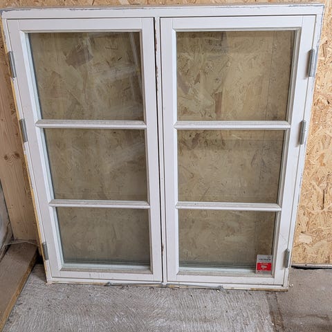 Köpte nya fönster till hela huset och vi bestämde oss att sätta i en dörr på ett ställe till slut. Nu finns det ett fönster kvar, aldrig monterat.
