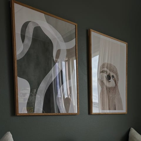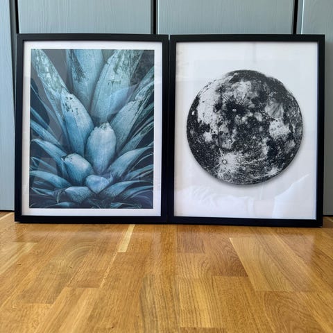 Som nya! 3 st tavlor med måtten 50x70 cm med riktigt glas och svart ram.