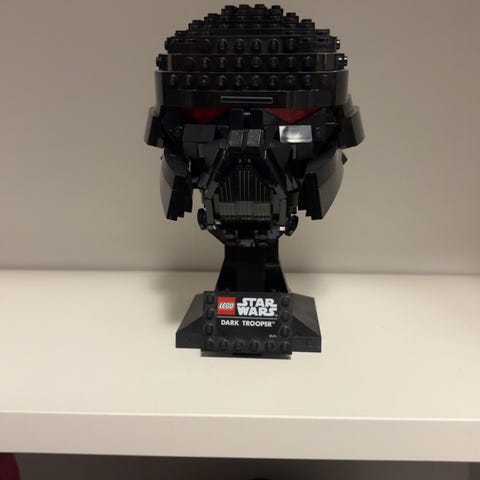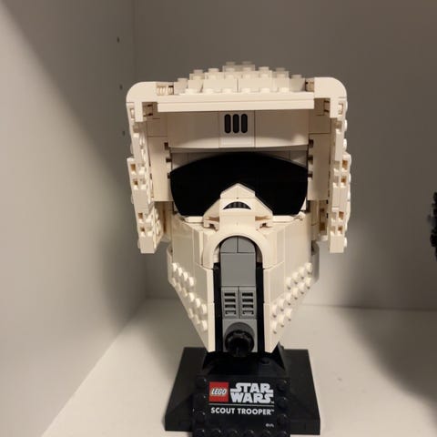 Lego Star Wars hjälmset byggsatser. Setet består av flera hjälmar från Star Wars-universumet uppbyggda av Lego-klossar, inklusive modeller, svart hjälm samt grå hjälm. Hjälmarna står på svarta ställ med namnskyltar och lämpar sig som samlarobjekt eller dekorationsmodeller för hylla eller skrivbord. Byggsatserna riktar sig främst till äldre barn, ungdomar och vuxna som är intresserade av Star Wars och Lego-samlarserier.