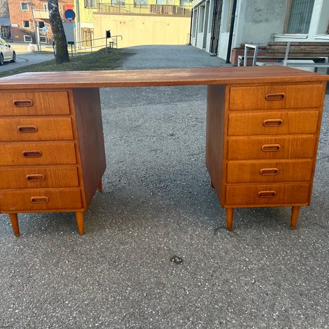 Teakhylla med utdragbart skrivbord