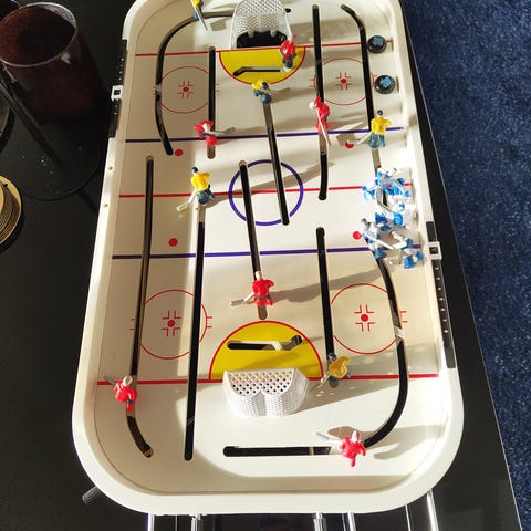 11 ishockeyspelare med puck. Setet består av flera spelarpjäser i två olika lagfärger samt en puck. Figurerna föreställer ishockeyspelare och målvakt, avsedda som delar till ett bordsspel eller liknande. Passar för den som behöver reservdelar eller komplettering till ett ishockeyspel. OBS! Endast 4 gula utespelare